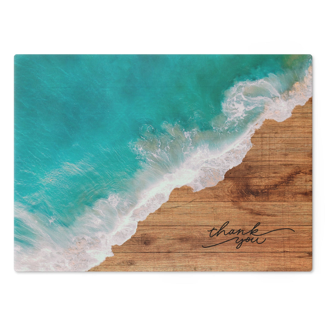 Tempered Glass Ocean Waves Serving Board | Coastal Chopping Platter
