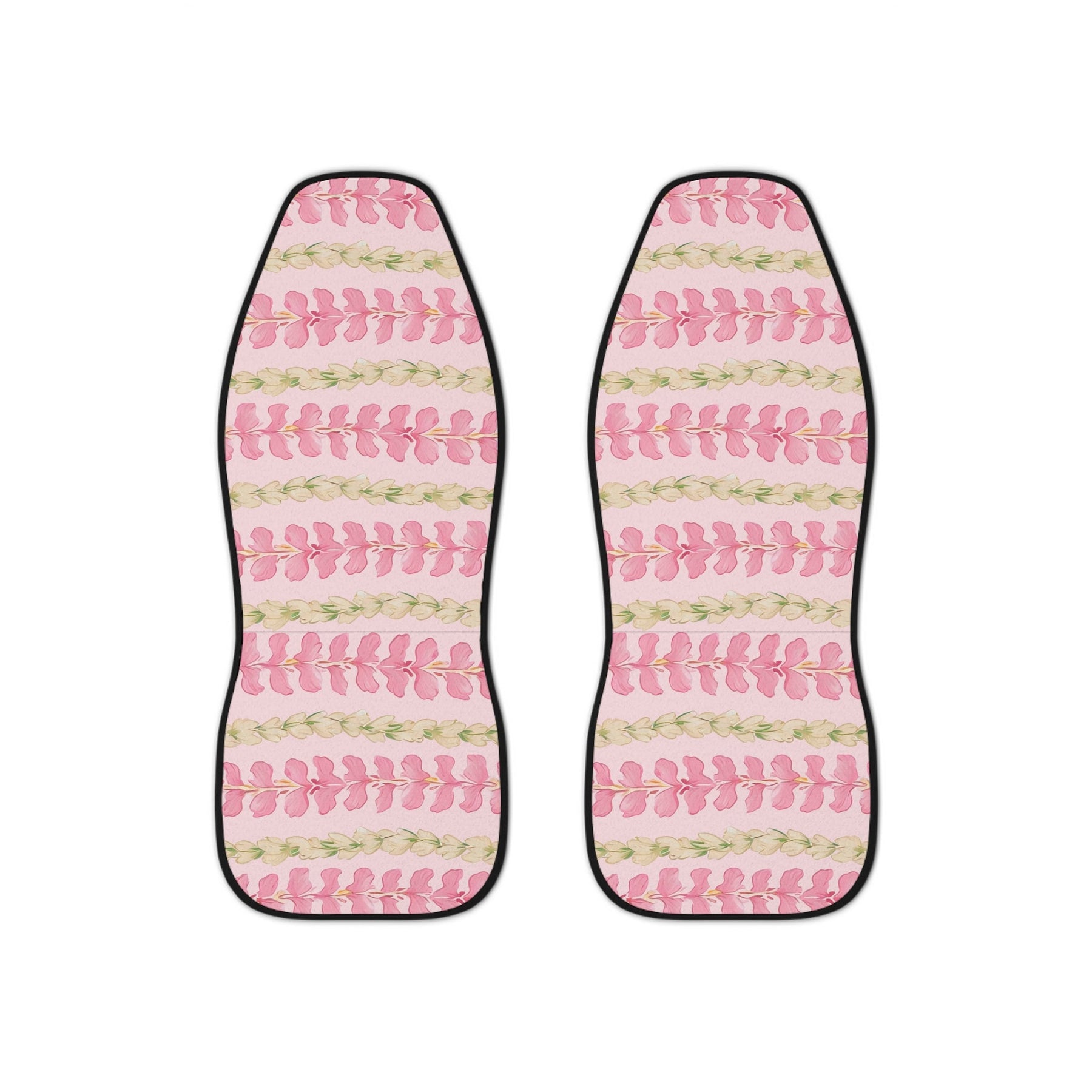 - Universal Fit & Set: Set includes two identical Hawaiian flower lei design seat covers with a sleek black back cover that fits most standard vehicle seats.