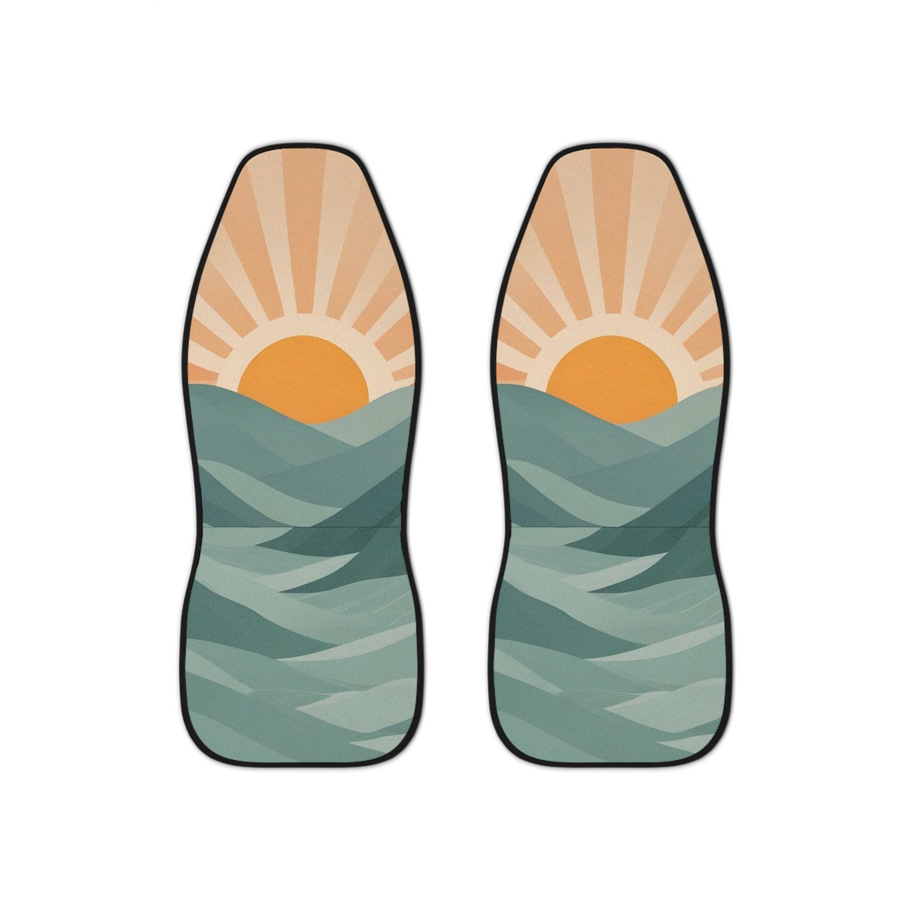Sunrise Beach Car Seat Covers offer a stylish and practical way to protect car seats while enhancing your vehicle’s interior with vibrant retro flair. These durable polyester covers are designed as universal seat covers that fit most 70s bucket seats, making upgrading your car interior accessories effortless.