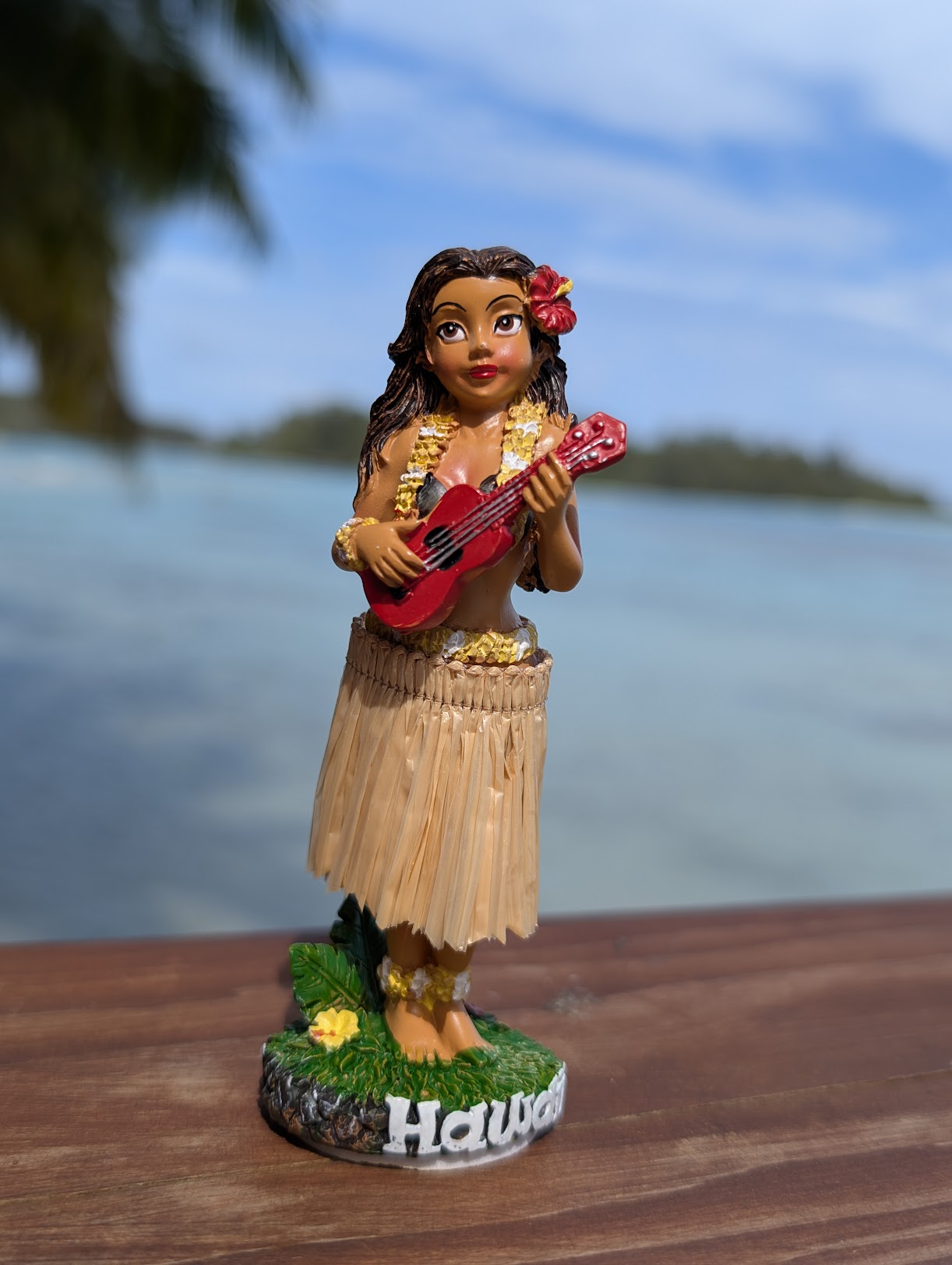 Hawaiian Dashboard Hula Doll (4 inch) | Hand Painted Ukulele Figurine & Tropical Car Decor