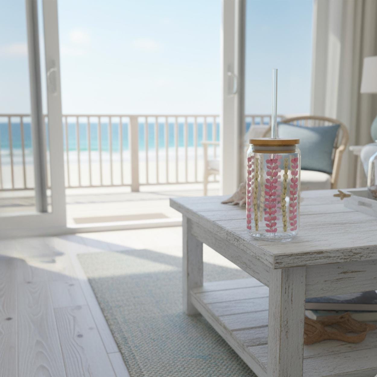 Hawaiian Lei Glass Tumbler (16 oz) | Bamboo Lid & Reusable Glass Straw