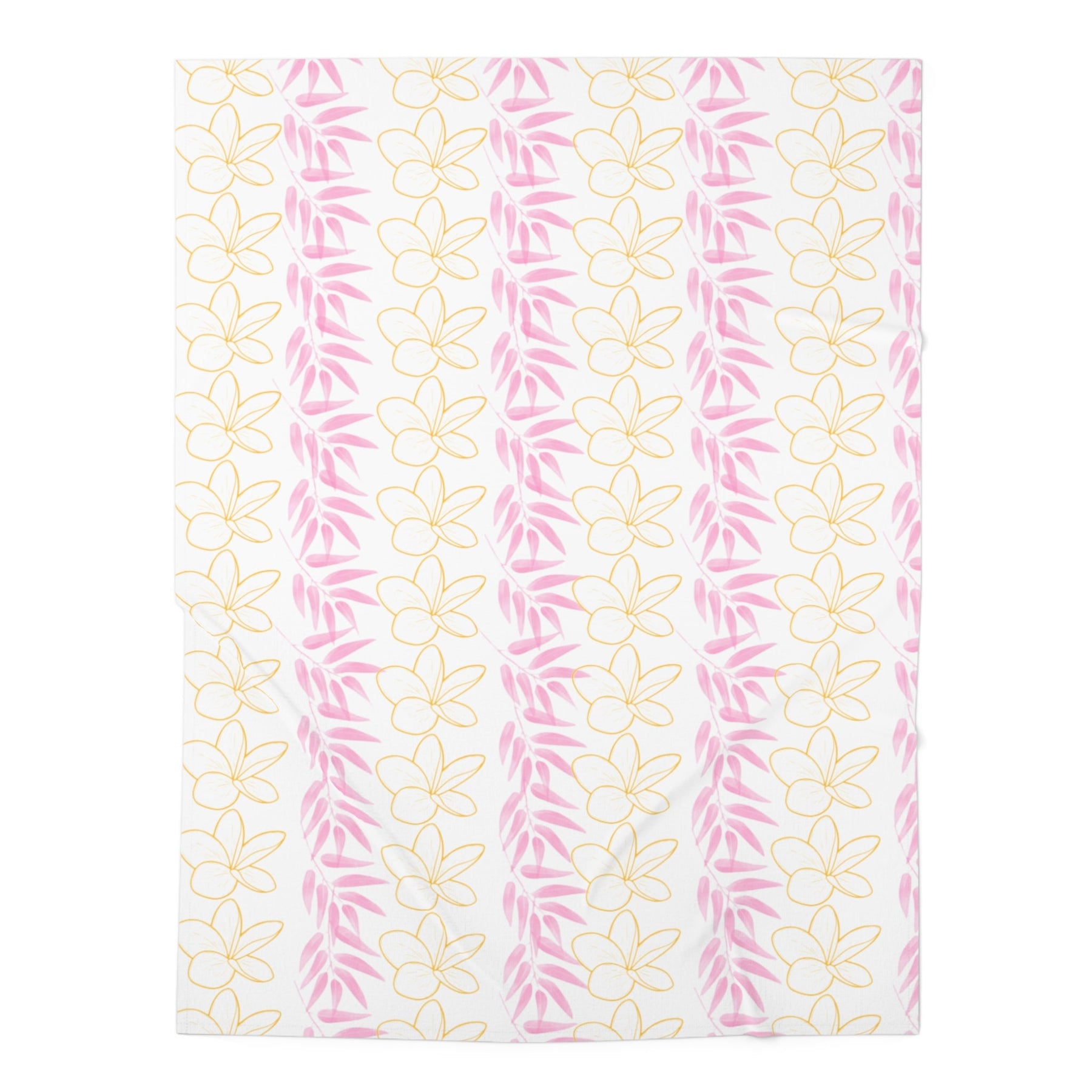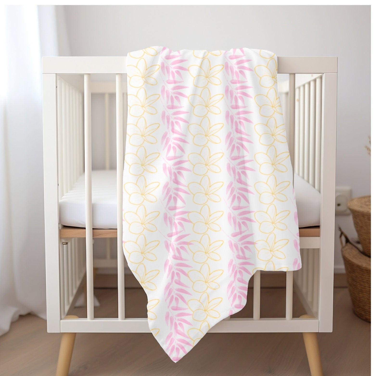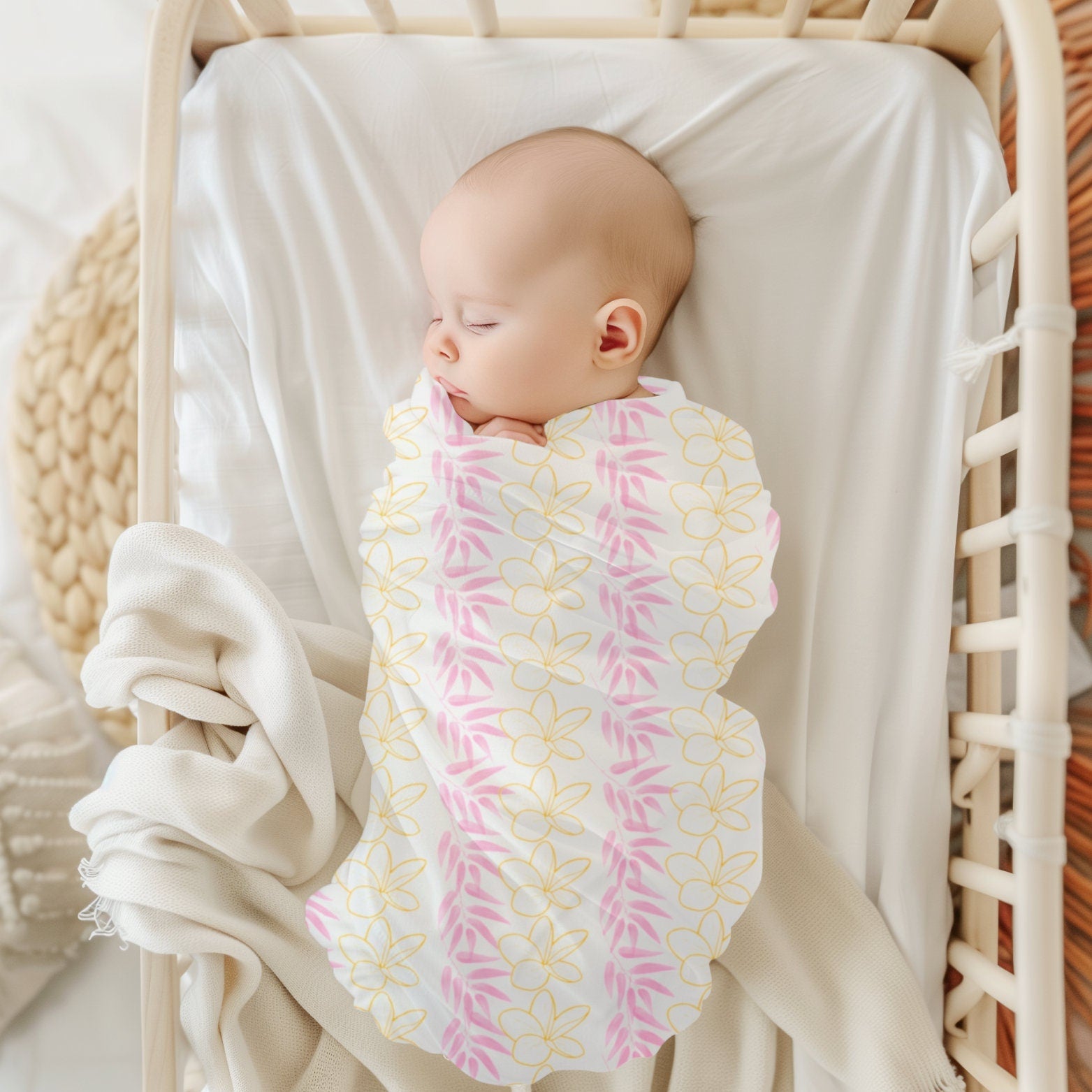 The Plumeria Lei Baby Blanket is a premium baby swaddle blanket designed to keep your newborn cozy and secure while promoting restful sleep. This soft baby wrap features a vibrant flower lei print that brings tropical aloha vibes to your baby's nursery. Crafted from breathable, 100% jersey polyester, this tropical baby blanket ensures your infant stays comfortable without overheating.