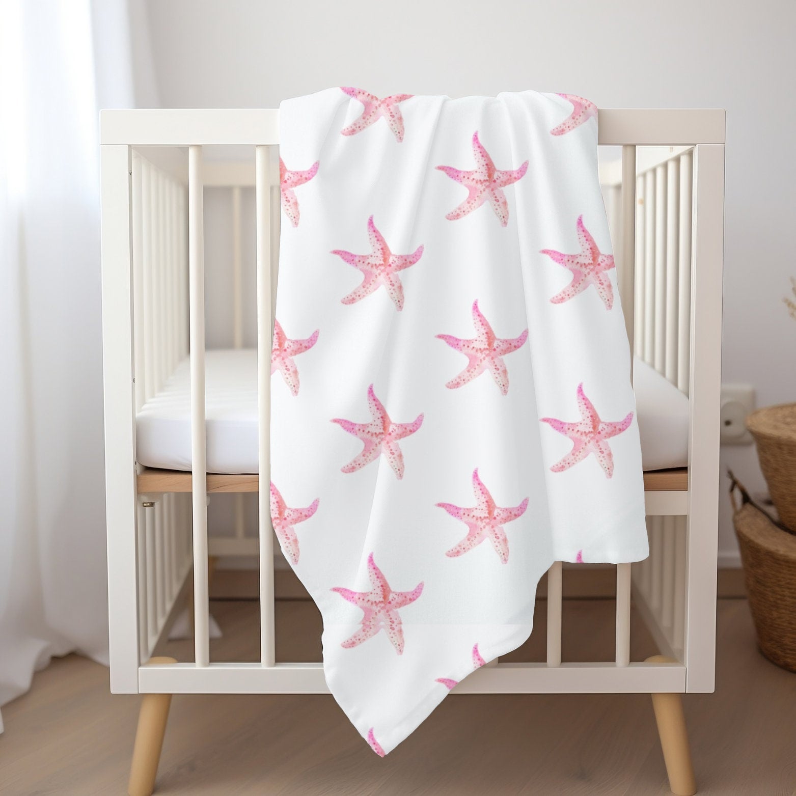 - Authentic Design: Pink starfish swaddle design adds tropical charm; ideal as a girls nursery blanket or boho baby blanket accessory.