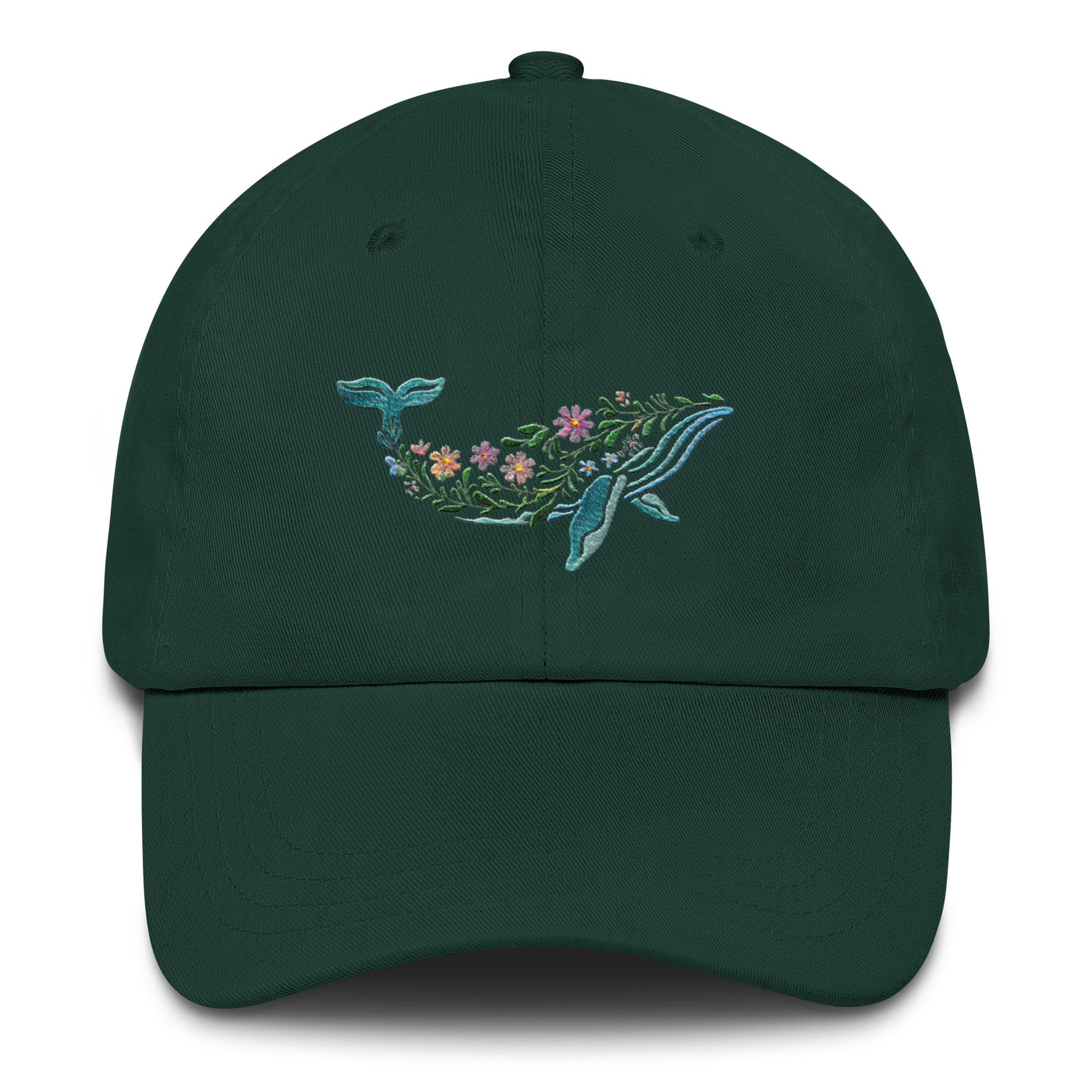 • Meaningful Design: Embroidered dad hat with a floral humpback whale design; a wearable tribute to nature and marine life.