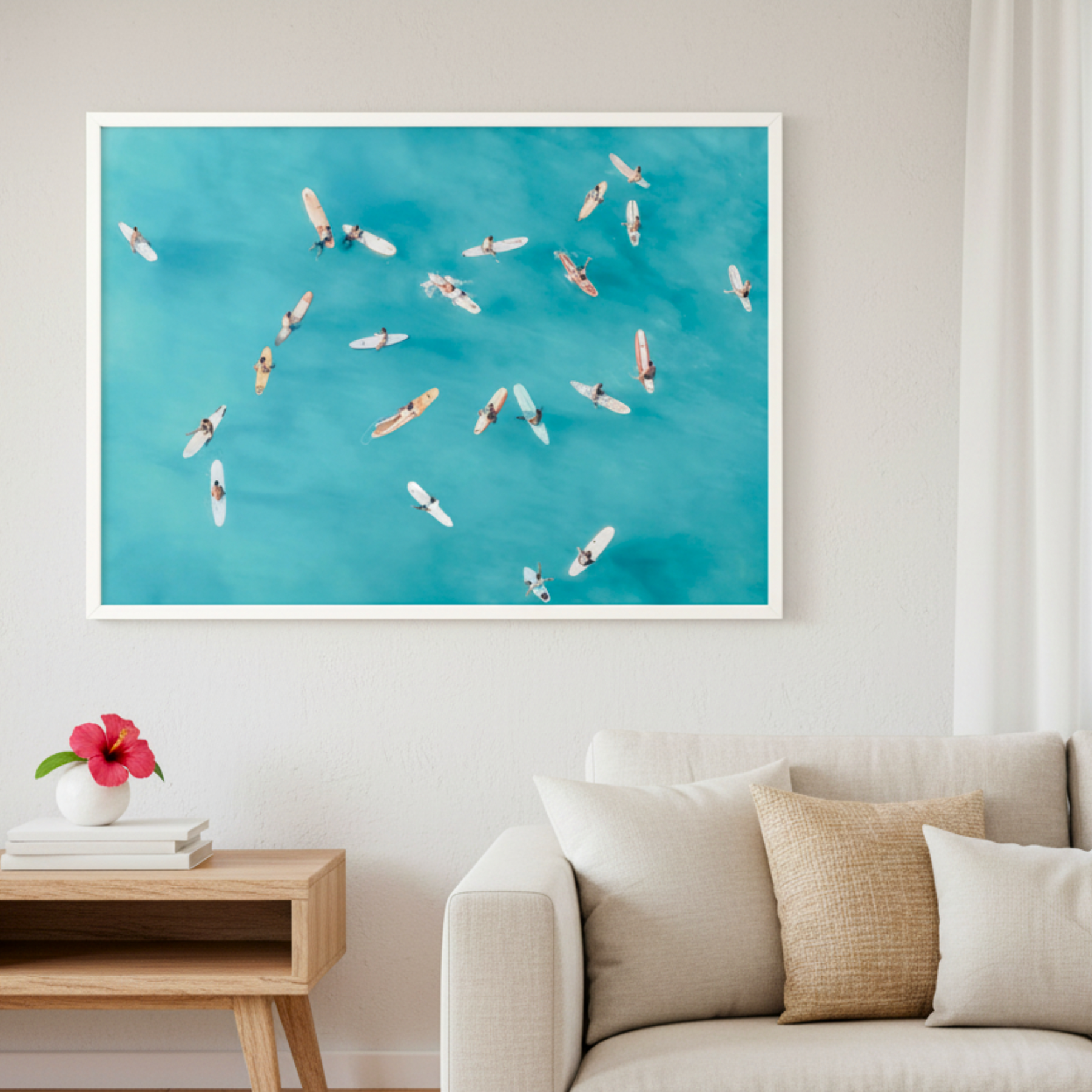 Elevate your space today with this exclusive Aerial Surf Art. This Digital Surf Art file enhances any room with relaxed beach vibes and a vintage coastal feel, maintaining modern clarity and depth. We recommend printing on lustre or matte heavy-weight paper for optimal results and reduced glare.