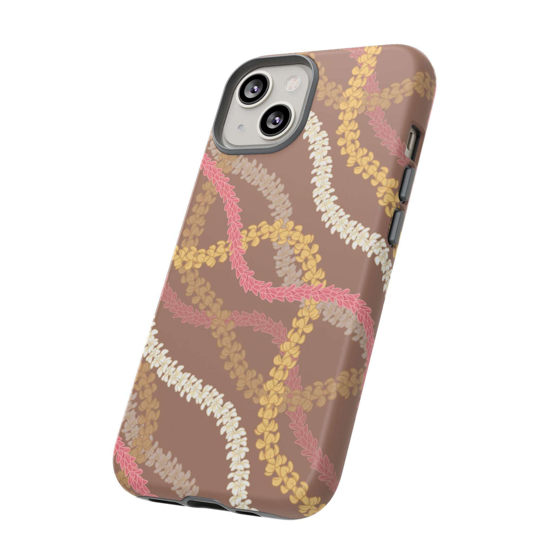 The Hawaiian flower phone case offers vibrant, durable phone protection with a stunning flower lei design that brings tropical summer vibes to your everyday life. This tough phone case is crafted for iPhone and Samsung models, combining a hard polycarbonate shell with a soft TPU inner lining to guard against drops and scratches while maintaining a slim profile.