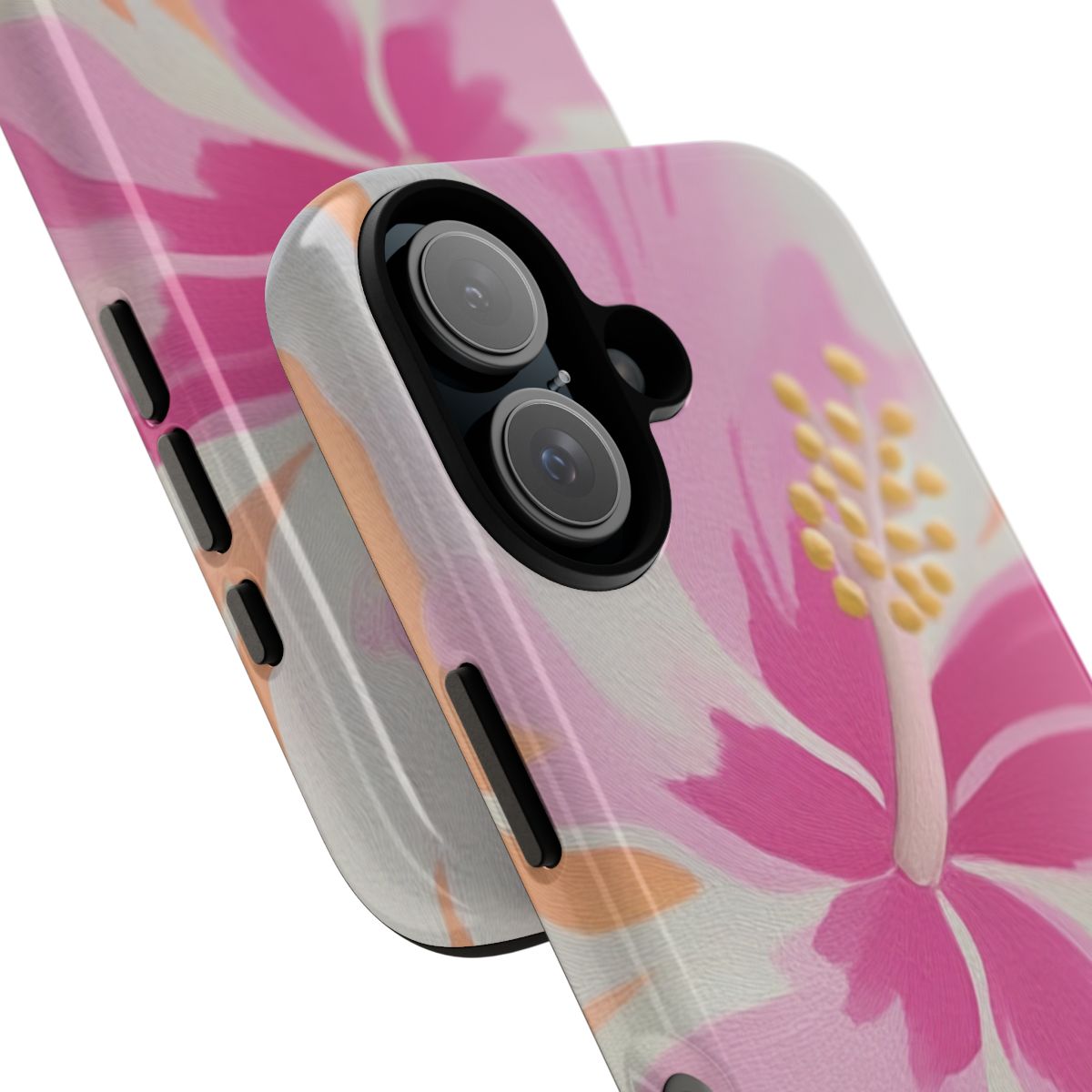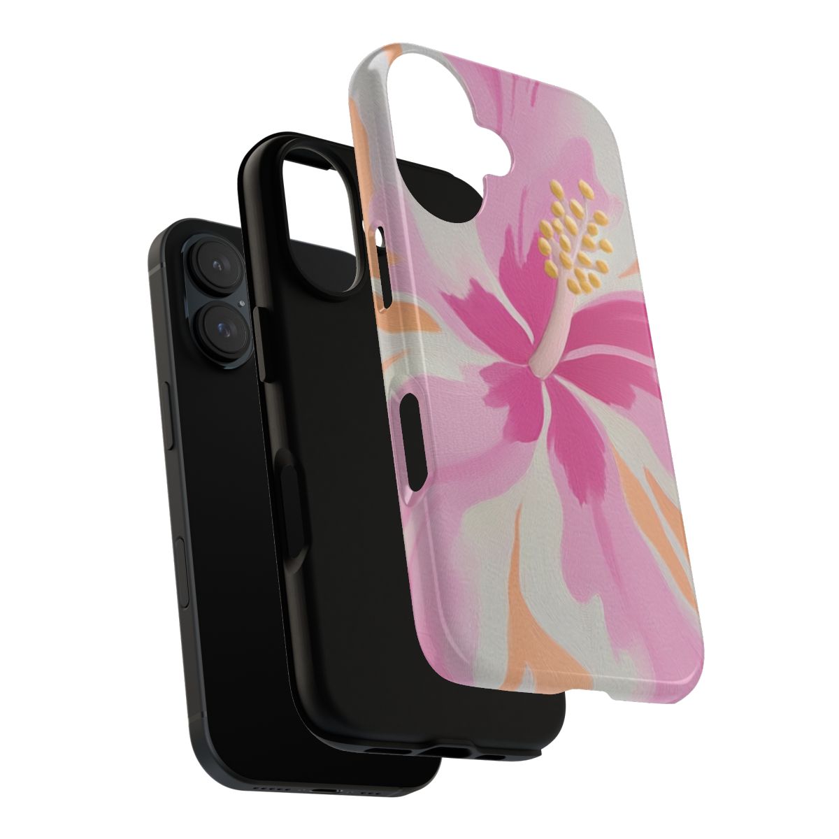 - Vibrant Design: Vibrant floral phone case colours through UV printing; available in matte finish phone case or glossy finish case options. Features a pink hibiscus flower design with a preppy summer vibe.