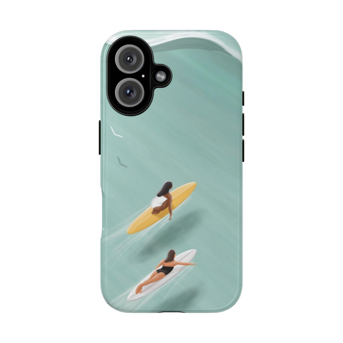 The Wave Babes tough phone case offers robust protection while showcasing your love for the ocean with its unique surfer girls design. This durable phone case combines a minimalist phone case style with boho vibes to deliver a slim protective case that guards your device from drops and scratches.