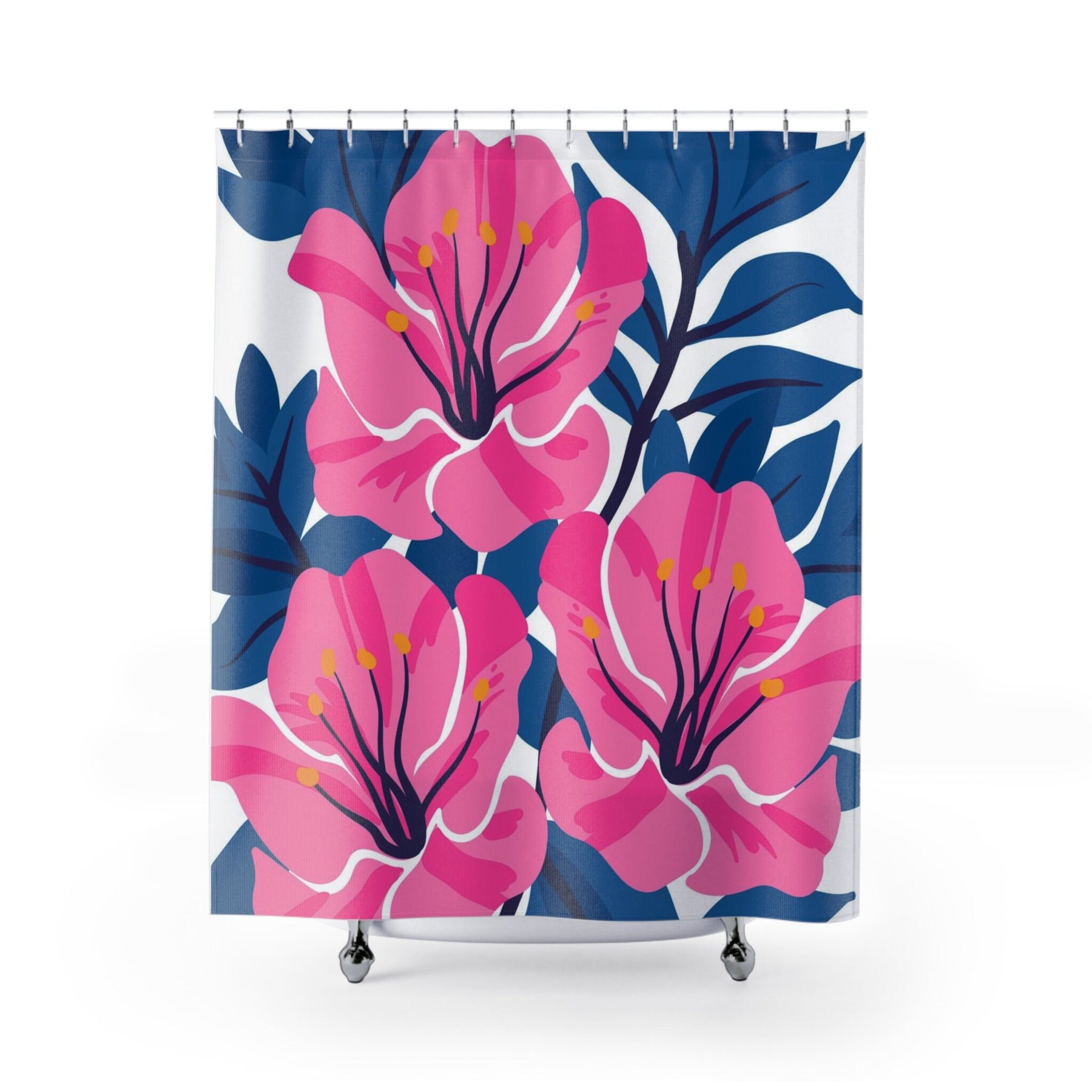 Transform your bathroom into a Tropical Paradise! This Bora Bora Shower Curtain features a striking vintage Hawaiian floral print (Pink Hibiscus) that brings vibrant, exotic charm to any space.