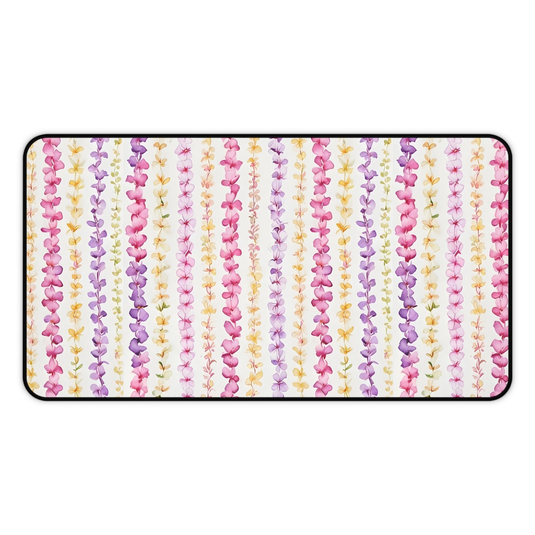 The Hawaiian flower lei desk mat brings a tropical vibe and practical protection to your workspace, transforming any desk into a tropical retreat. This vibrant floral desk blotter features a stunning watercolour flower mat design that brightens any desk with island inspired design and summer desk decor.