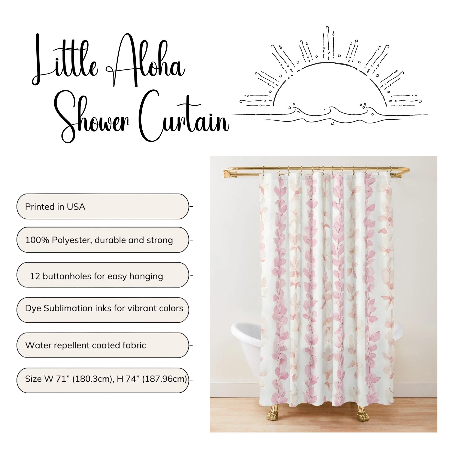 Mahalo for choosing thoughtful products that celebrate island life every day. Elevate your bathroom with this floral shower curtain and enjoy the perfect blend of tropical style and practical waterproof protection.