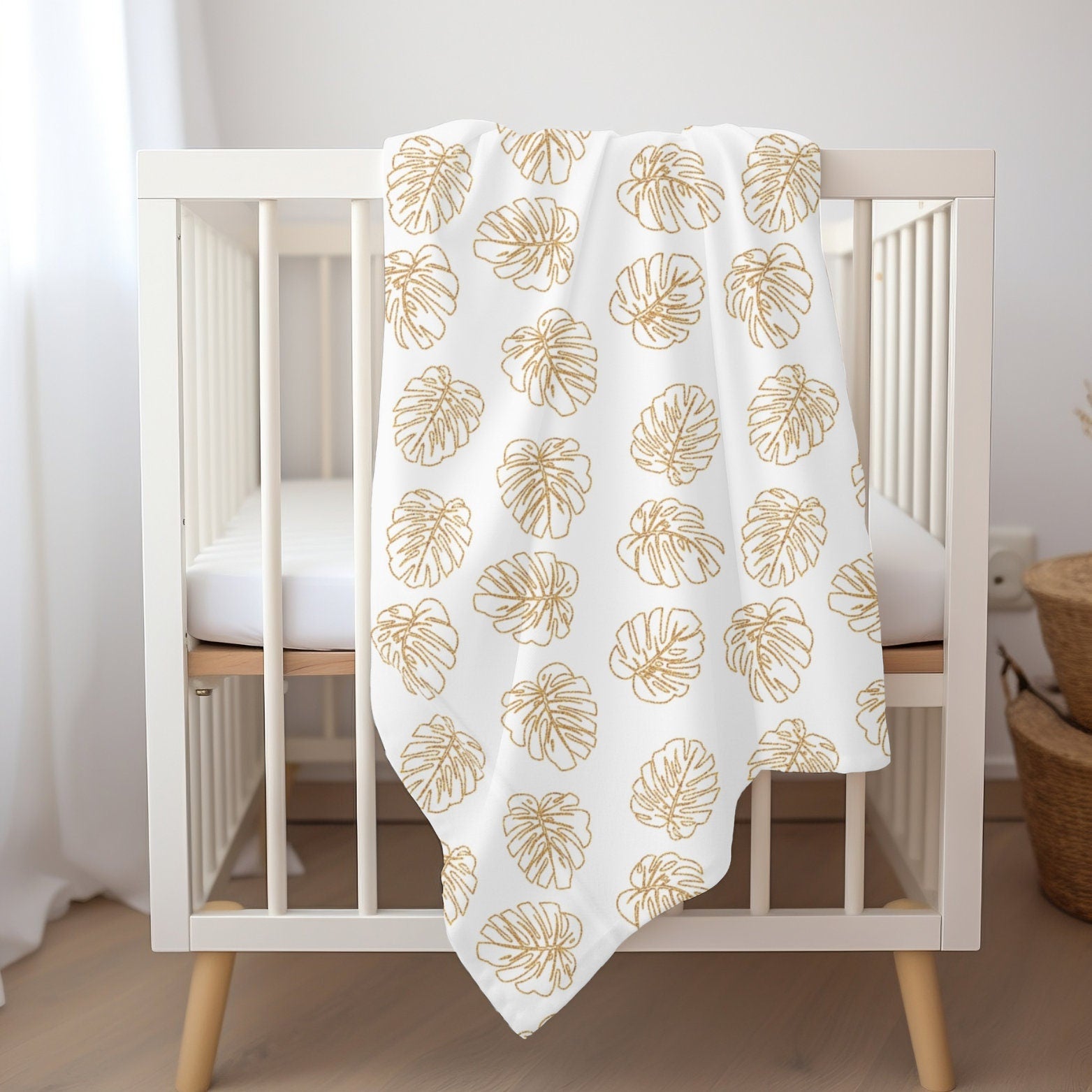 The Kailua Sunset Baby Blanket is a premium baby swaddle blanket designed to keep your little one cozy and comfortable while celebrating the aloha spirit with its tropical monstera leaf design. Crafted from 100% jersey polyester, this soft baby wrap features breathable baby fabric that is gentle on newborn skin.