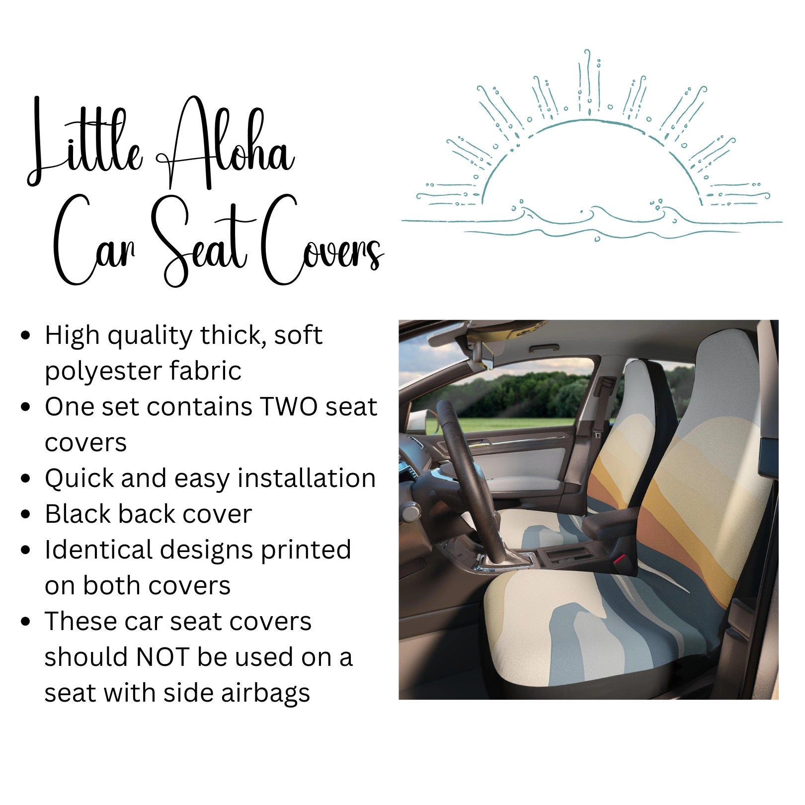 Made to order to reduce waste and support sustainable purchasing choices, each set is carefully crafted upon order to ensure quality and uniqueness. This approach helps minimize overproduction while delivering a product that meets your personal style needs. Our customers consistently praise the durability and eye-catching design of these protective car seat covers, making them a trusted choice for vintage car interior upgrades.