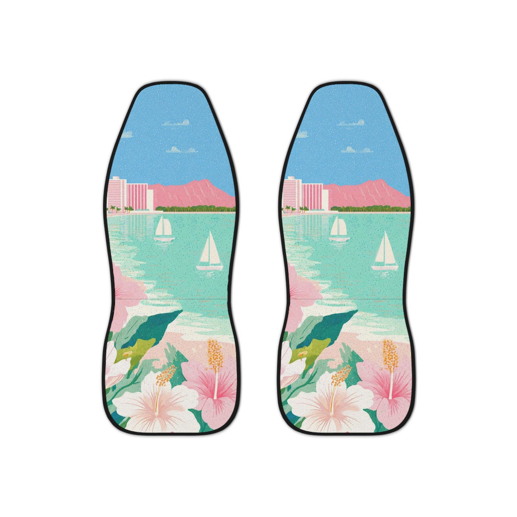Waikiki Beach Car Seat Covers bring vibrant tropical car seat covers style and durable protection to your vehicle, transforming your daily drive with Hawaiian surf culture decor inspired by the iconic Waikiki shoreline. These universal front seat covers provide fade resistant fabric covers that shield your seats from spills, sandy feet, and wear.